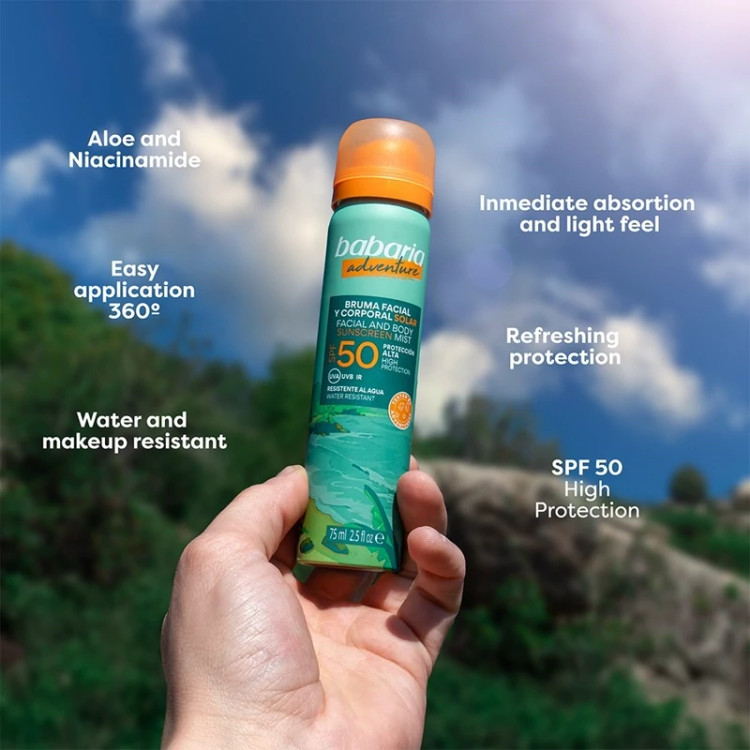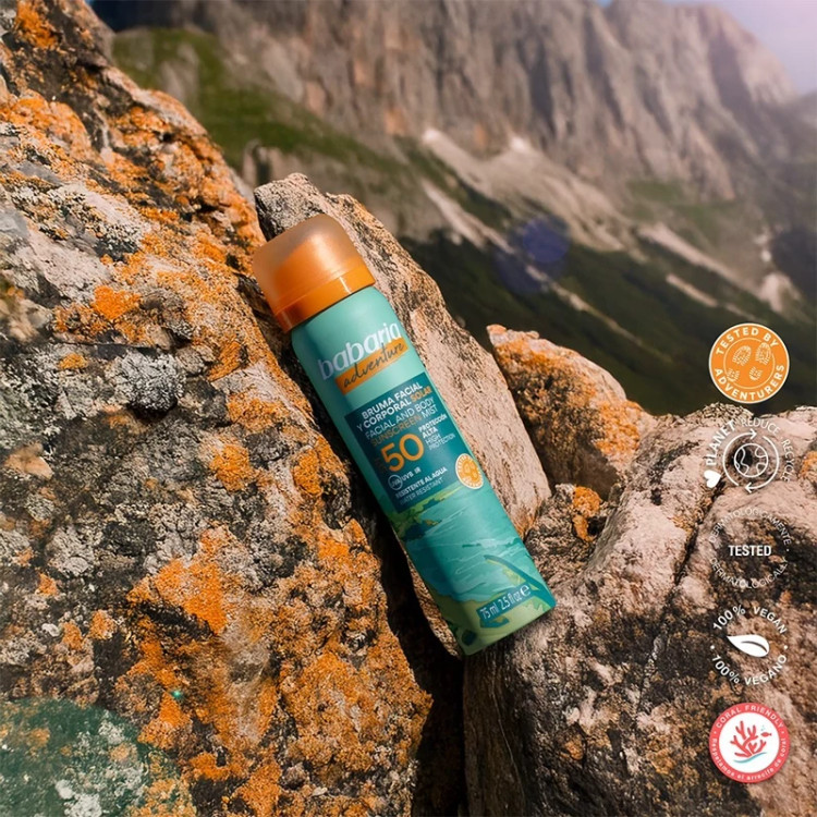 اسپری ضد آفتاب صورت و بدن باباریا babaria حاوی SPF 50 مدل ادونچر Adventure حجم 75 میل